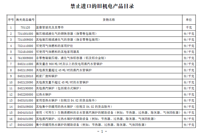 禁止進(jìn)口的舊機(jī)電產(chǎn)品目錄