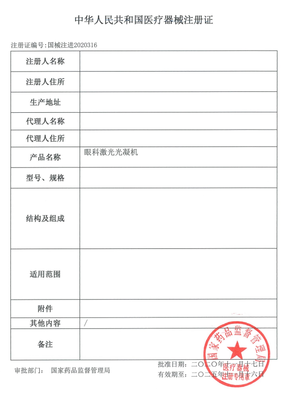 中華人民共和國醫(yī)療器械注冊證(樣例)