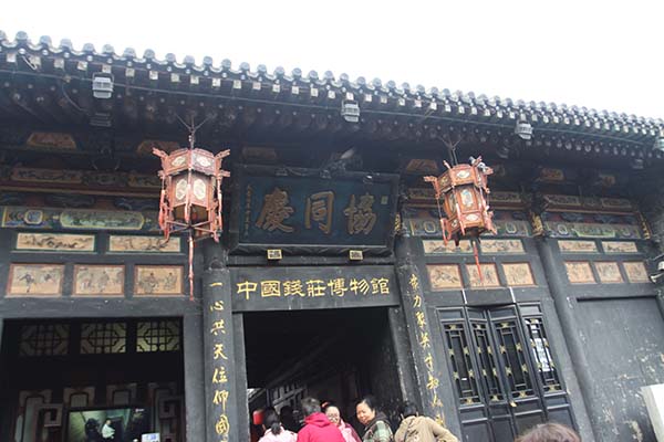 從縣衙出來,我們走在明清一條街。這里全是明清時(shí)代的古建筑,各個(gè)店鋪的門面和牌匾也是古代的樣式,有很多的游客都穿著古代的服裝進(jìn)行拍照,仿佛自己也穿越了。后來我們還參觀了協(xié)同慶票號(hào),也就是我們現(xiàn)在銀行的前身,是平遙古城里占地面積最大的票號(hào),前前后后相互獨(dú)立又密不可分的7進(jìn)碩大院落,既有柜臺(tái)帳房錢庫、也有管理人員辦公區(qū)域,還有員工生活居住場所、有議事廳和后花園等等,實(shí)為一座五臟俱全的金融世界。神奇的鎮(zhèn)城之寶是根樟木雕刻的神龍寶柱,據(jù)說這根龍柱,是建在整個(gè)“龜城”的正中心。很多游客都喜歡到地下金庫,摸摸這根神龍寶柱,沾沾財(cái)氣,但是不能摸頭哦,因?yàn)樨?cái)氣就到頭了,哈哈。