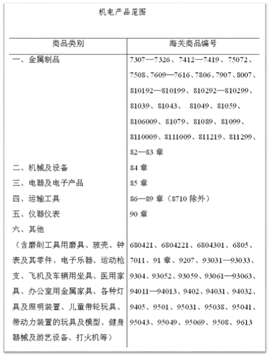 4)機(jī)電產(chǎn)品范圍和對應(yīng)的海關(guān)商品編號:
