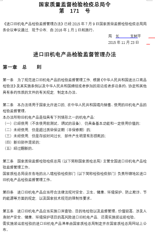 進(jìn)口舊機(jī)電產(chǎn)品檢驗(yàn)監(jiān)督管理辦法國(guó)家質(zhì)量監(jiān)督檢驗(yàn)檢疫總局令