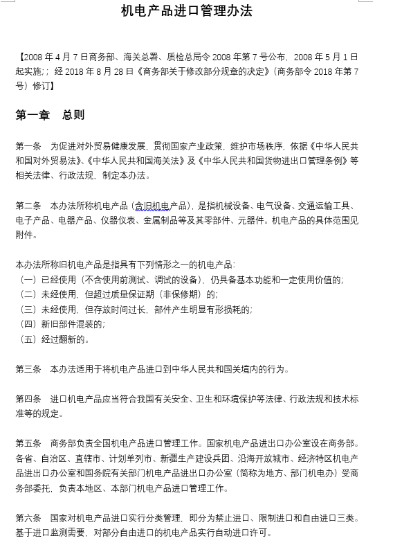 機電產(chǎn)品進口管理辦法