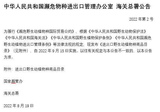 中華人民共和國瀕危物種進(jìn)出口管理辦公室海關(guān)總署公告(2022年第2號)-附件(進(jìn)出口野生動植物種商品目錄)