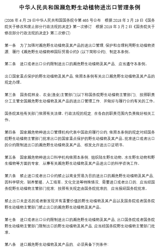 中華人民共和國瀕危野生動植物進出口管理條例