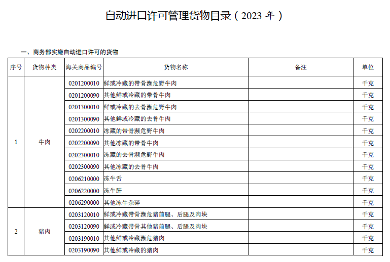 自動進(jìn)口許可管理貨物目錄(2023 年)
